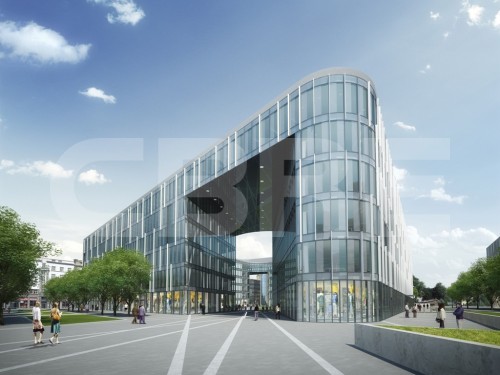 The office building consists of two blocks situated around an inner courtyard. Both objects have 6 above ground floors where the top floor is interconnected creating a single office floor exceeding 5,000 sq m.